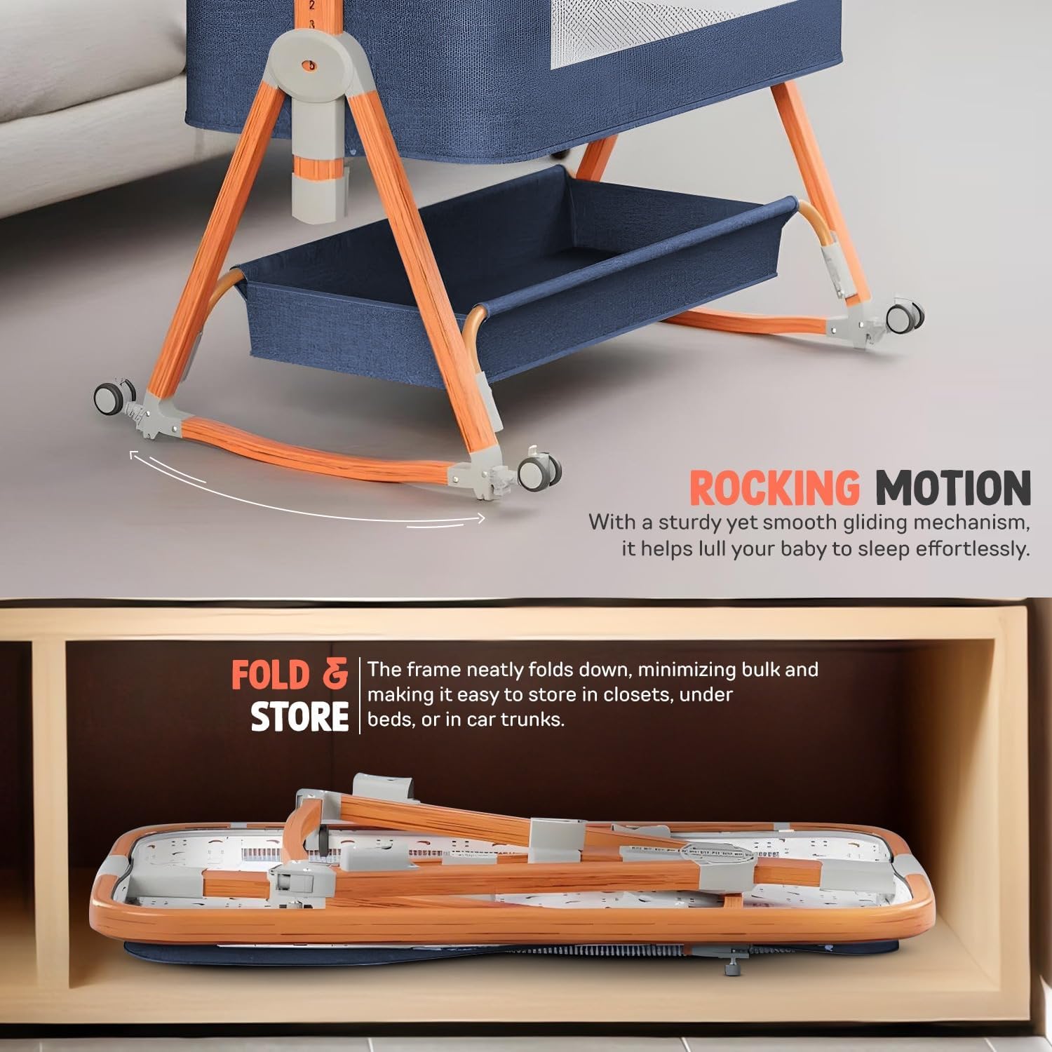 Baybee 3 in 1 Baby Bedside Crib Cradle with 6 Height Adjustments