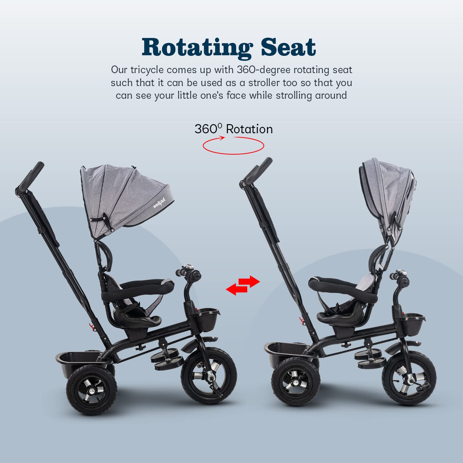 Baybee 3 in 1 Ditto Baby Tricycle for Kids with Rubber Wheels, Canopy & Parental Adjustable Push Handle