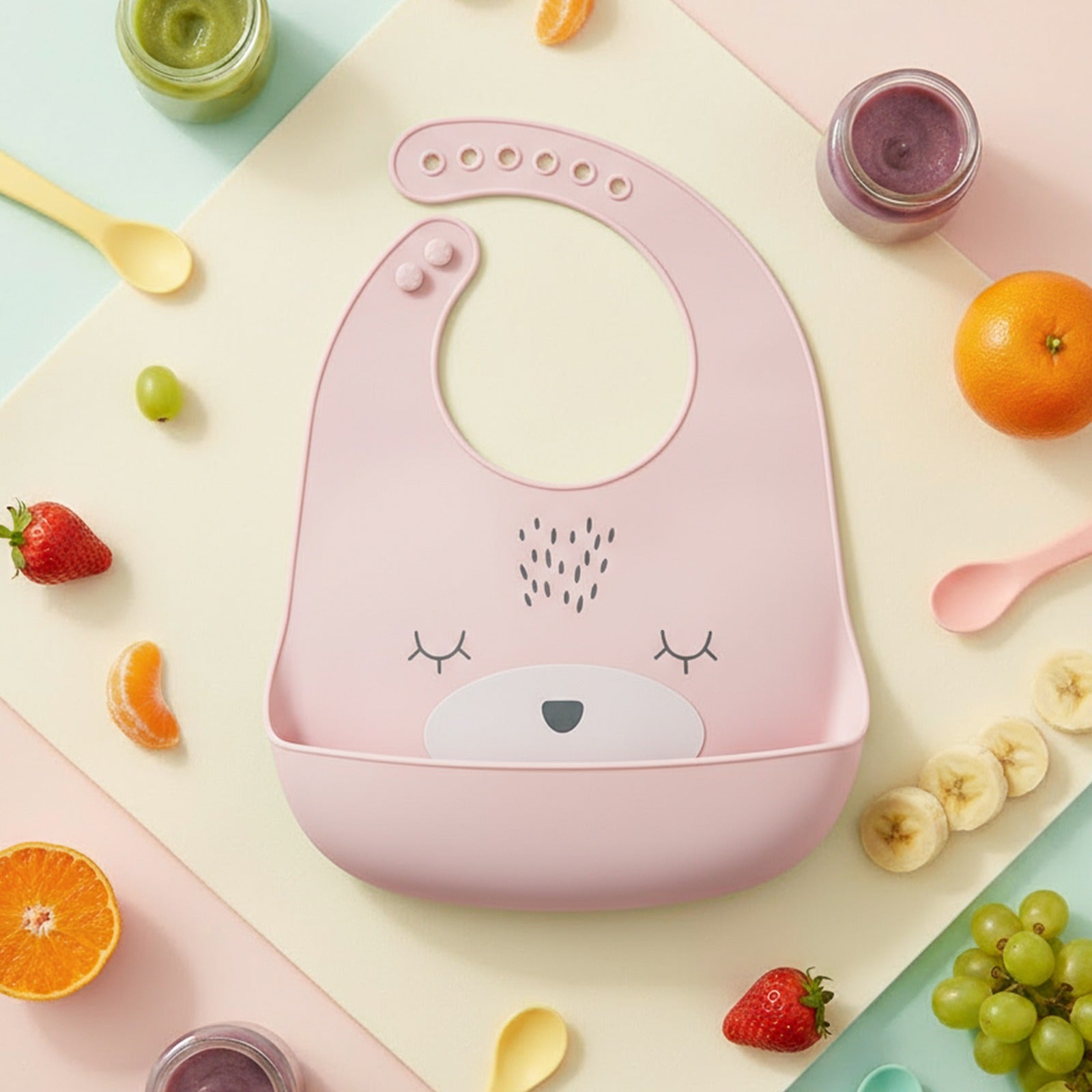 Baybee Baby Silicone Waterproof Bibs for New Born Baby with Pocket & 6 Adjustable Neckline