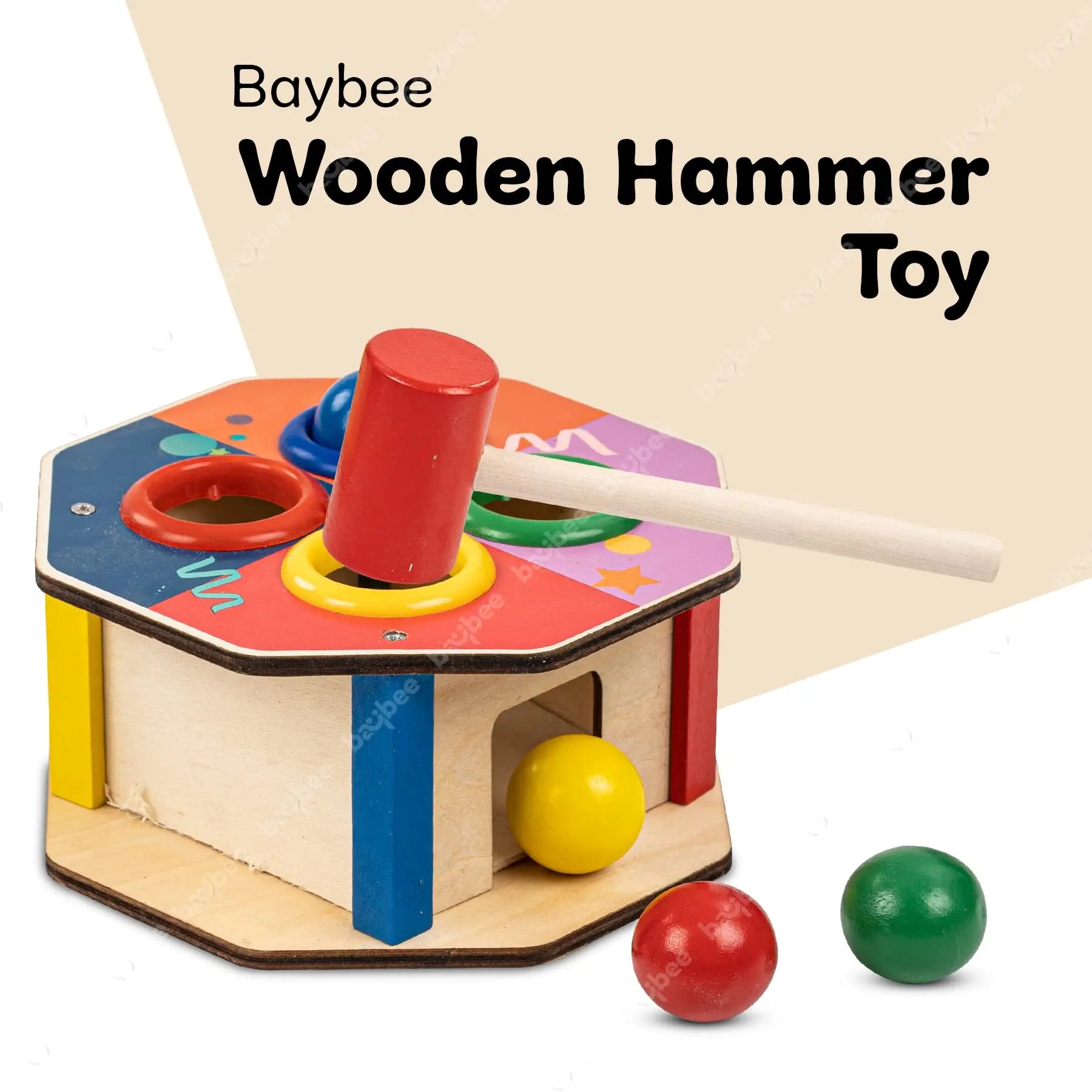 Baybee Wooden Hammer Ball Knock Pounding Bench with Box, Kids Toys Set, Learning Educational Hammer toy for Kids 3+ Years (Assorted)