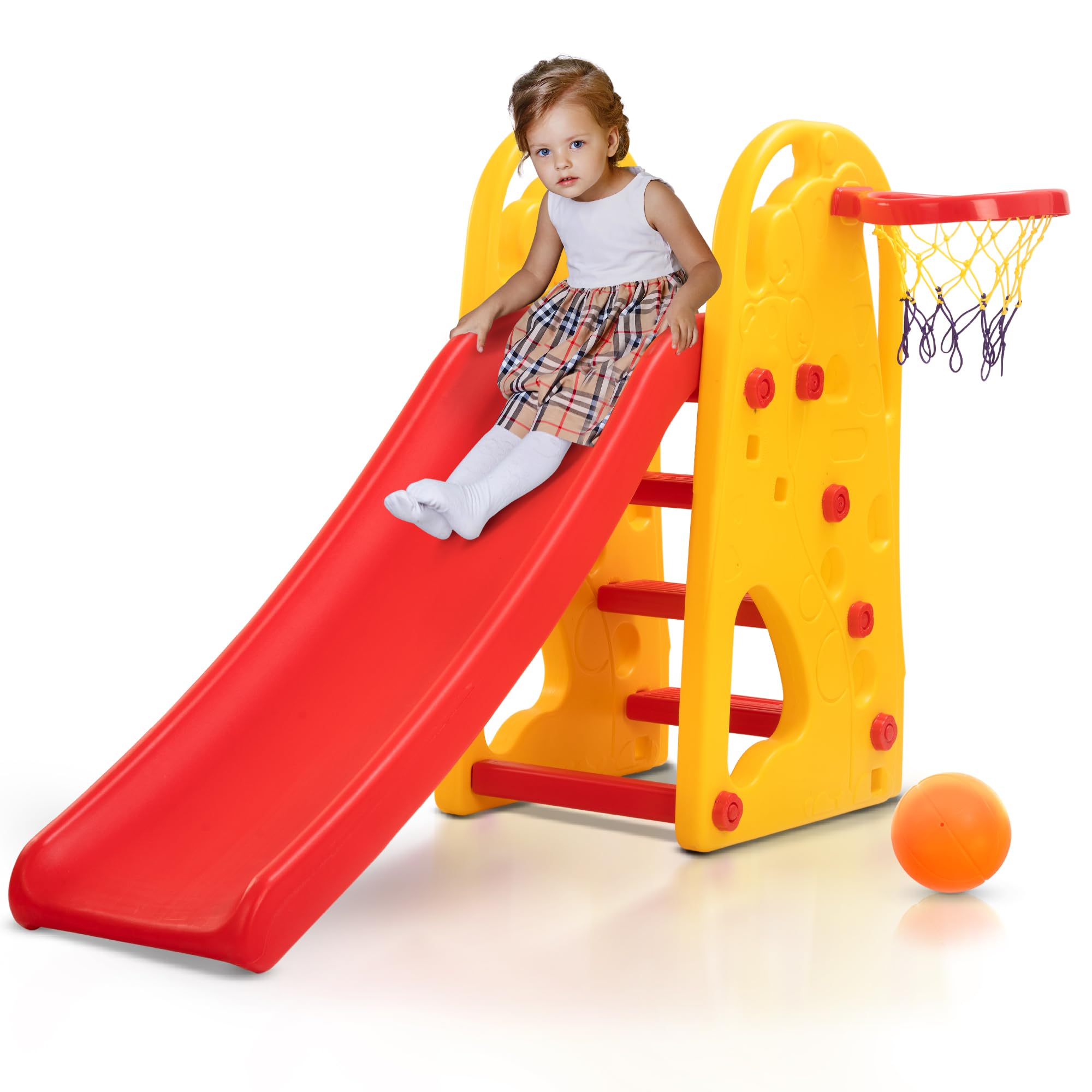 Baybee 3 in 1 Pony Garden Sliders for Kids, Plastic Baby Slide with Basketball Hoop for Kids